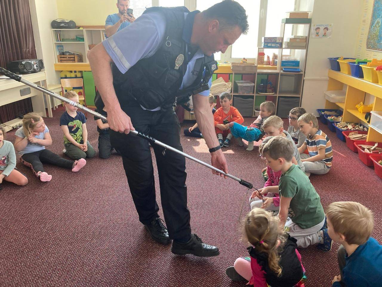 BESEDA S DĚTMI V MŠ MODRÁ ŠKOLKA 27.04.2022 Dne 26. 01. 2022 v dopoledních hodinách navštívili strážníci městské policie v rámci programu prevence další z mateřských školek, a to Modrou školku na ulici Křížkovského. Dětem byla předvedena výstroj a základní vybavení strážníků městské policie. Dále se mohly děti seznámit s některými činnostmi městské policie. Strážníci dětem vysvětlili, jak se například postupuje při odchytu zatoulaných psů, jak se používají ke komunikaci služební vysílačky nebo jak a kdy je nutné použít donucovací prostředky. Následovala diskuse na téma: - jak telefonovat, když jsem sám doma, - jak jednat při kontaktu s cizími lidmi, - co dělat, když uvidím odhozenou injekční stříkačku, - co dělat, když mně někdo ubližuje, nebo ubližuje druhým, - sám doma, - sám na ulici, - co dělat při kontaktu se psy. Na závěr byly děti seznámeny se základy dopravní výchovy. | |