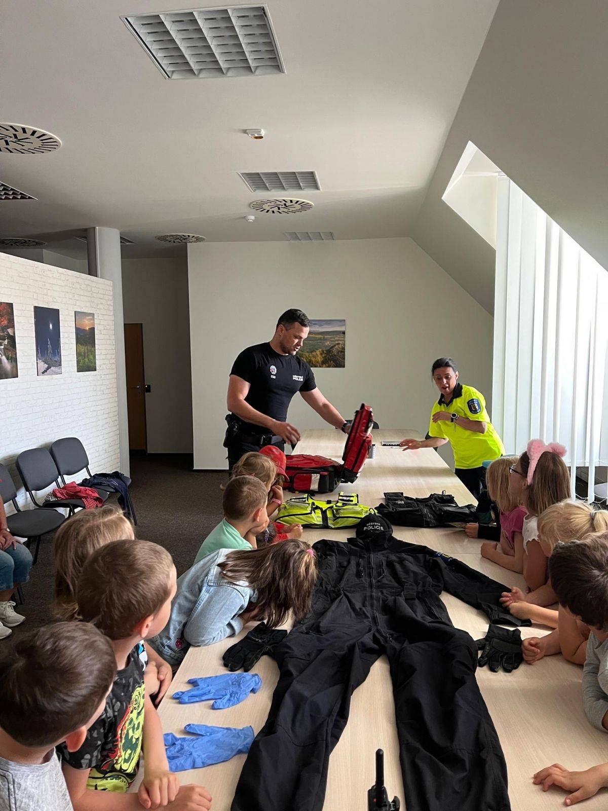 MŠ ŠIROKÝ BROD 05.06.2023 Poslední setkání před prázdninami se uskutečnilo dne 05.06.2023, kdy zájem o návštěvu Městské policie Jeseník projevily děti z Mateřské školy ze Širokého Brodu. Návštěva dětí tak zakončila preventivní program pořádaný Městskou policií Jeseník ve spolupráci se základními a mateřskými školami pro školní rok 2022 - 2023. Děti se nejen seznámily s činností městské policie, ale také se základními návyky v rámci zdravého životního stylu. Cílem těchto setkání bylo především formou širokého dialogu ukázat dětem způsob, jak se bránit nástrahám dnešní doby, jako jsou například drogy, alkohol, ale také kybergrooming, kyberšikana či sexting, tedy rizika spojená s užíváním sociálních sítí, které v posledních letech zažívají obrovský rozmach a výrazně se podílejí na proměnách společnosti a to zejména mladých uživatelů. Závěrem bychom chtěli za Městskou policie Jeseník vyjádřit poděkování všem pedagogům a asistentům mateřských a základních škol, kteří se s námi na Programu prevence kriminality podíleli a doufáme, že se v příštím roce budeme opět setkávat a společně vychovávat děti tak, aby byly na svět dospělých, plný nástrah a možných rizik, co nejvíce připravené. | |