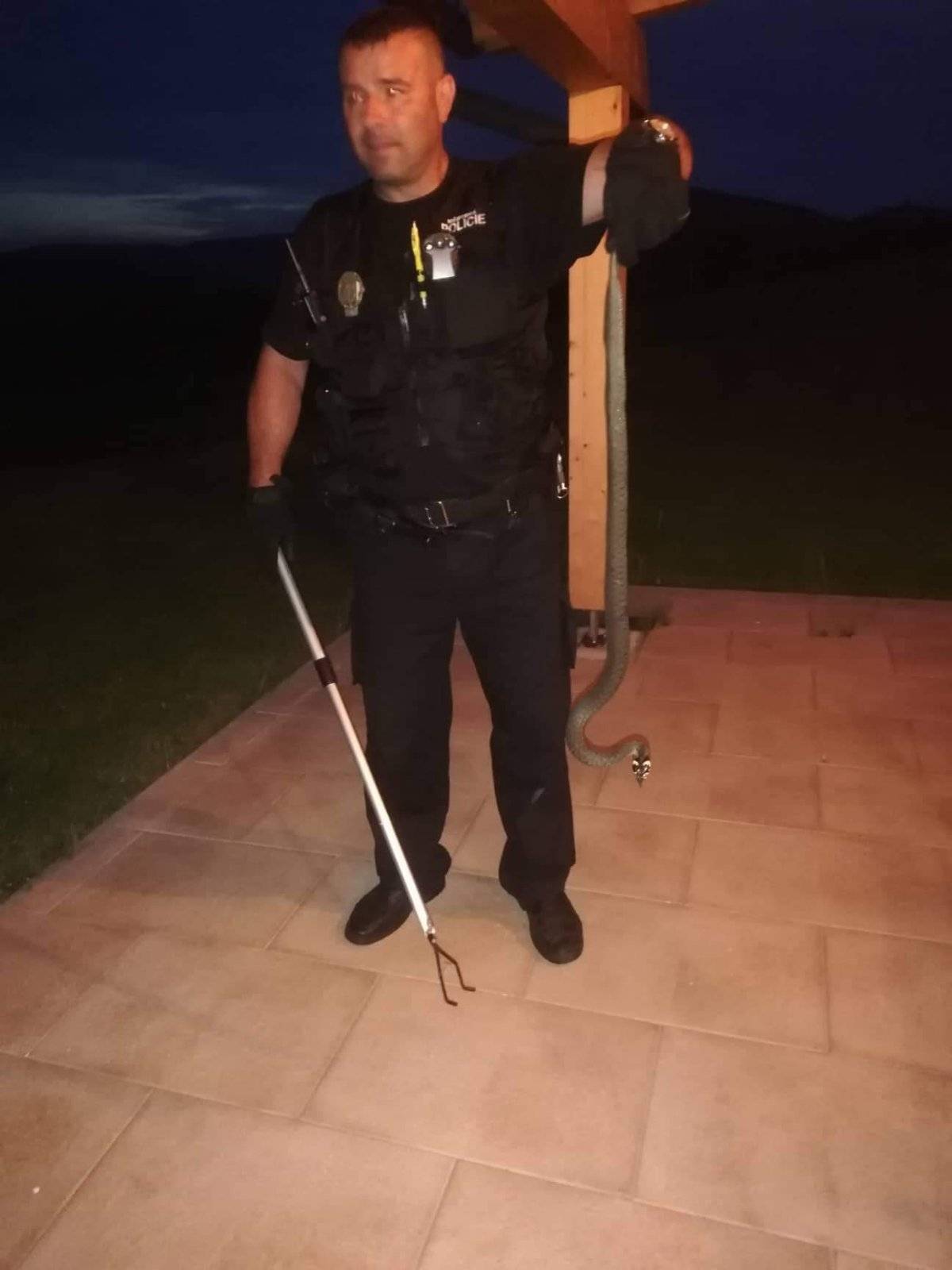 ODCHYT HADA 27.06.2022 Dne 27. 06. 2022 ve večerních hodinách bylo na tísňovou linku 156 Městské policie Jeseník přijato oznámení obyvatelky ulice Javorová s prosbou o pomoc. Obyvatelka uvedla, že na terase jejího domu se pohybuje had v délce cca 1 metr. Strážníci se ihned dostavili na určené místo a hada bezpečně odchytili. V tomto případě se jednalo o Užovku obojkovou (v České republice zvláště chráněna jako ohrožený druh), kterou poté strážníci vypustili ve volné přírodě. | |